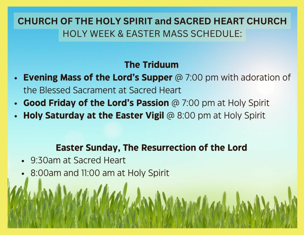 Family Friendly Lenten Retreat: Join us on Sunday, March 8th from 3:00pm-4:00pm in the Holy Spirit School library to reflect on how we will grow in Grace this Lent.